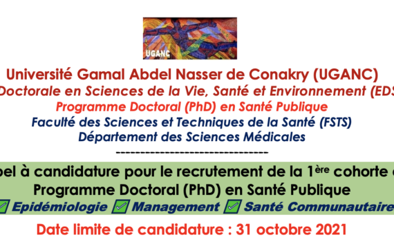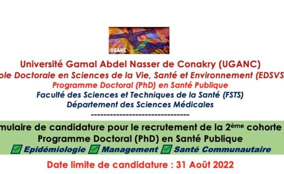 Objectifs de la formation :Le doctorat (PhD) en santé publique de l’UGANC vise à former des experts possédant une vision globale de la santé publique et des compétences approfondies leur permettant de devenir des chercheurs autonomes et des enseignants et praticiens qualifiés. Eligibilité Être de nationalité guinéenne ou d’un pays d’Afrique […]